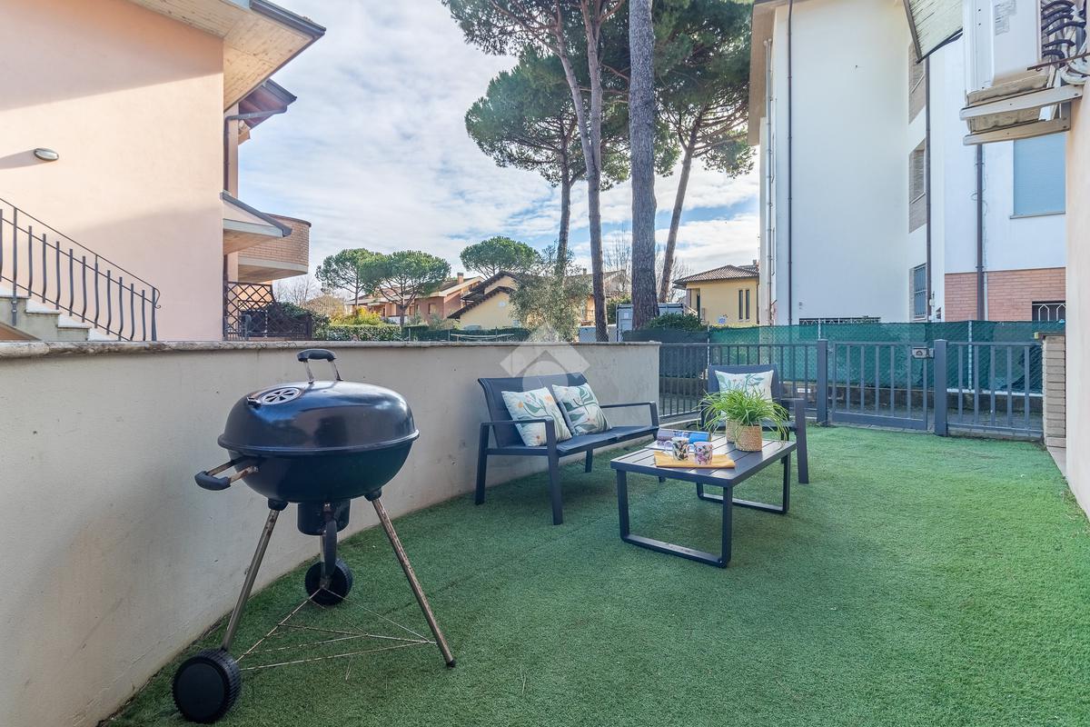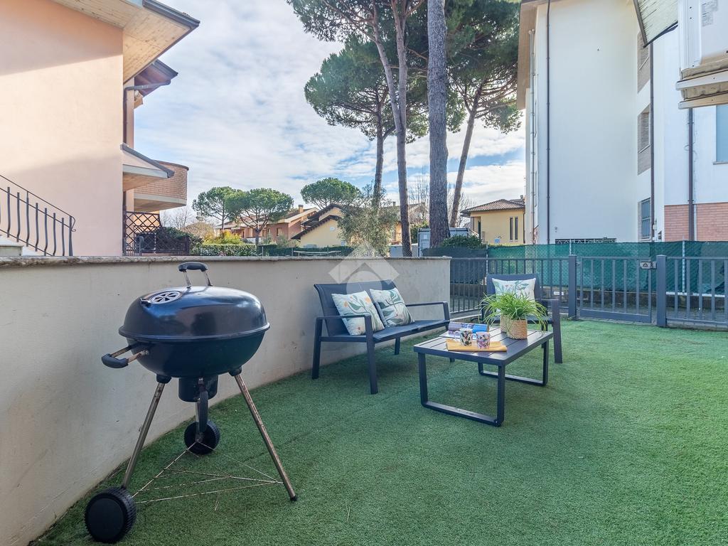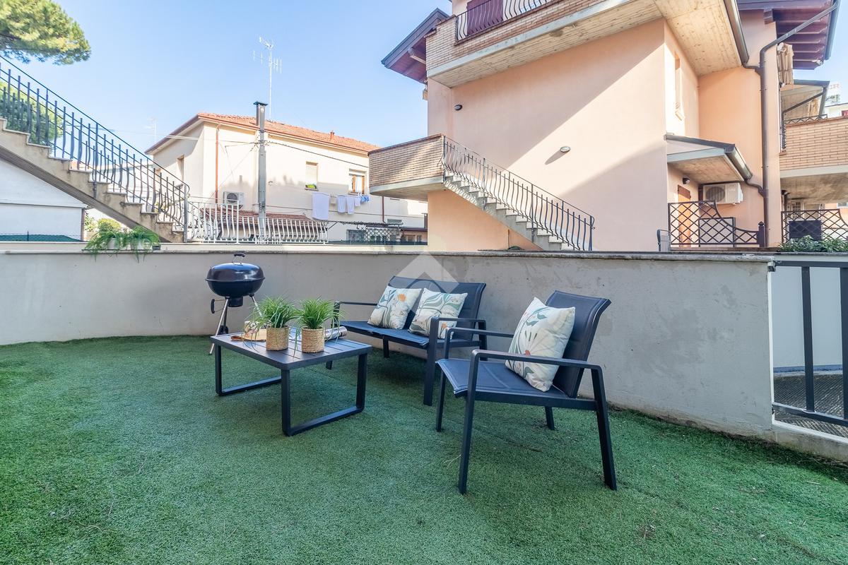 A soli 300 metri dal mare, proponiamo un appartamento al piano terra con ingresso indipendente e giardino privato, ideale per pranzi e cene all'aperto.