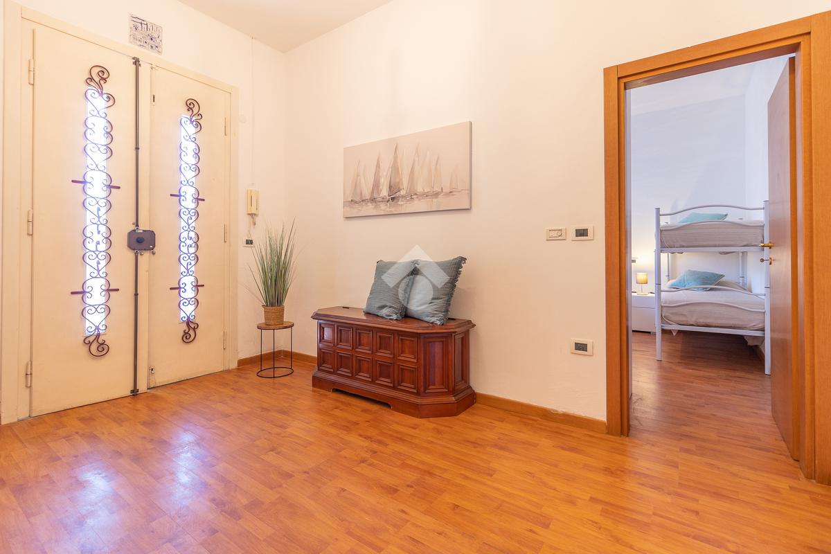 In posizione strategica, a soli 500 metri dal mare e a pochi passi dal centro un elegante appartamento al piano terra, caratterizzato da ingresso indipendente e giardino privato, perfetto per momenti di relax all’aperto, pranzi e cene in compagnia.