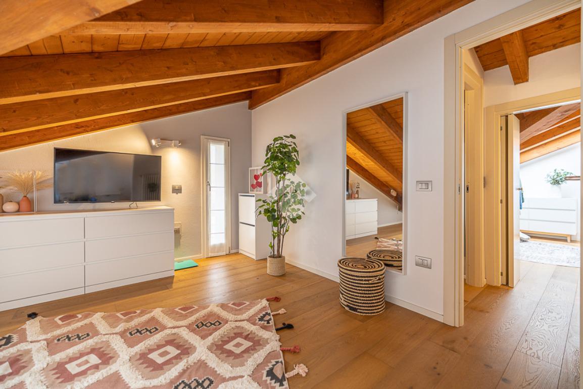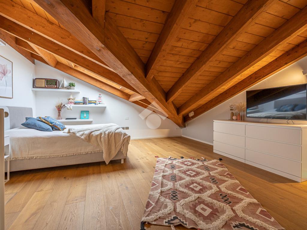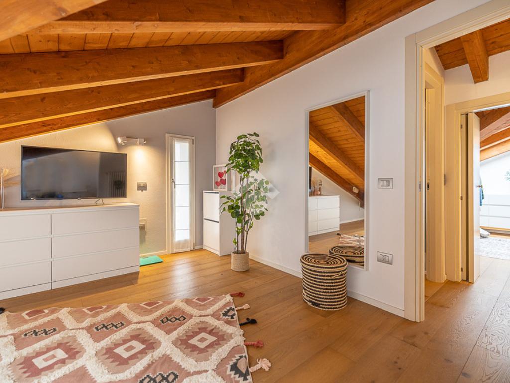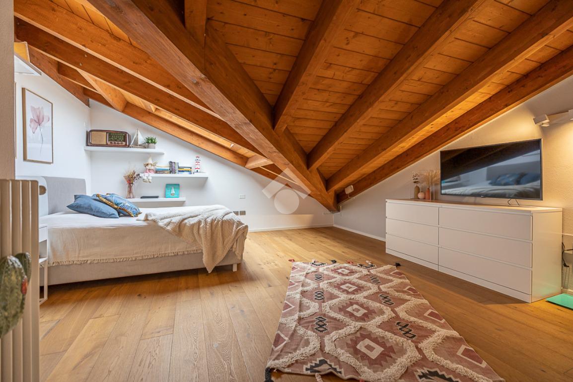 Il piano superiore è composto da un ambiente mansardato dove si possono ricavare due camere da letto o una zona hobby ed un ulteriore bagno.