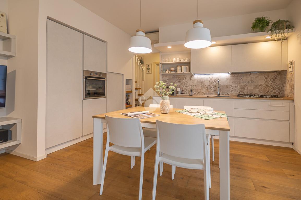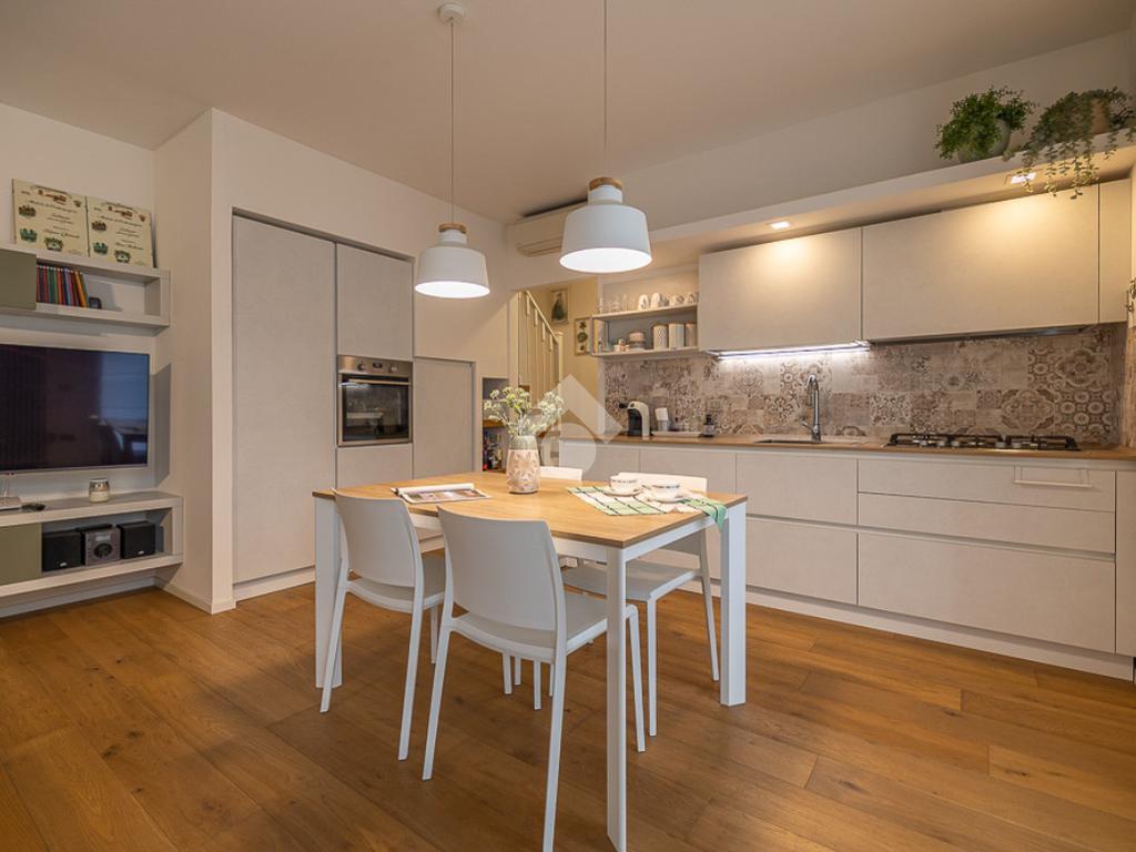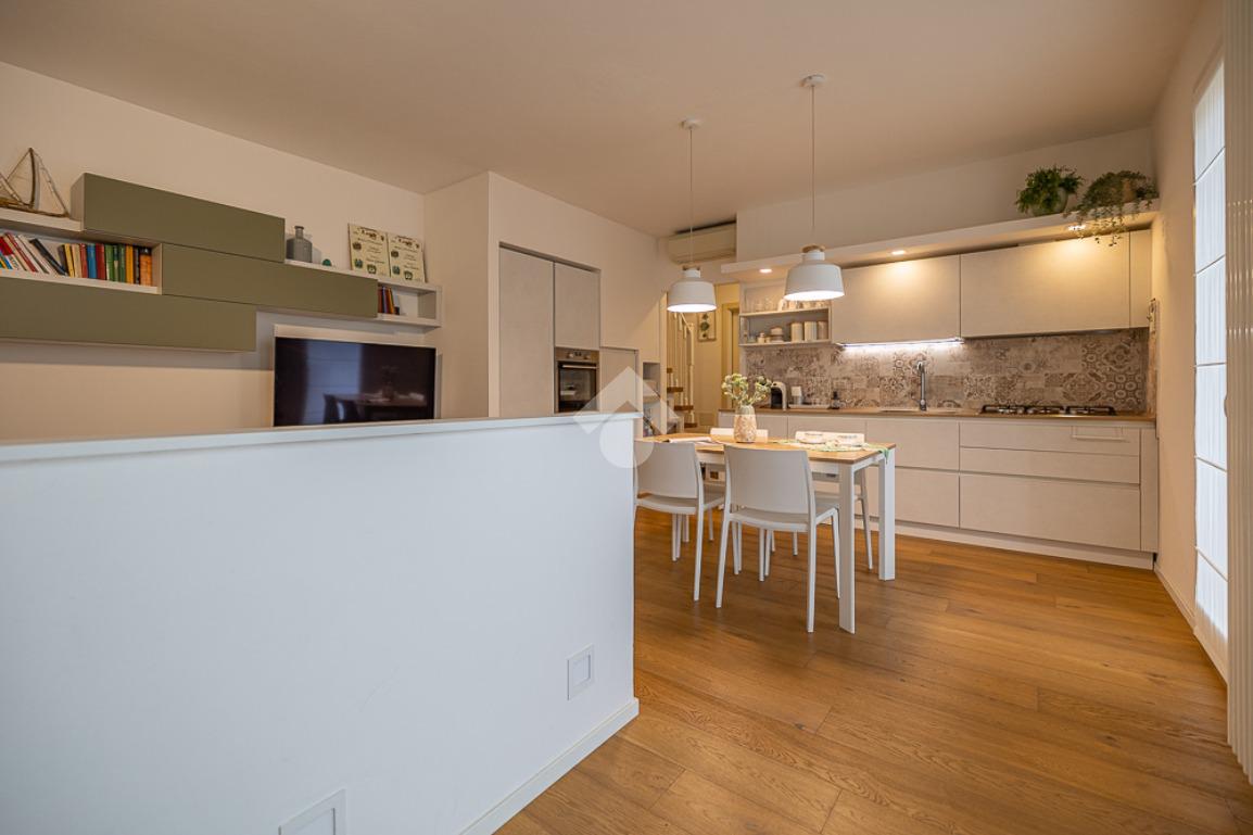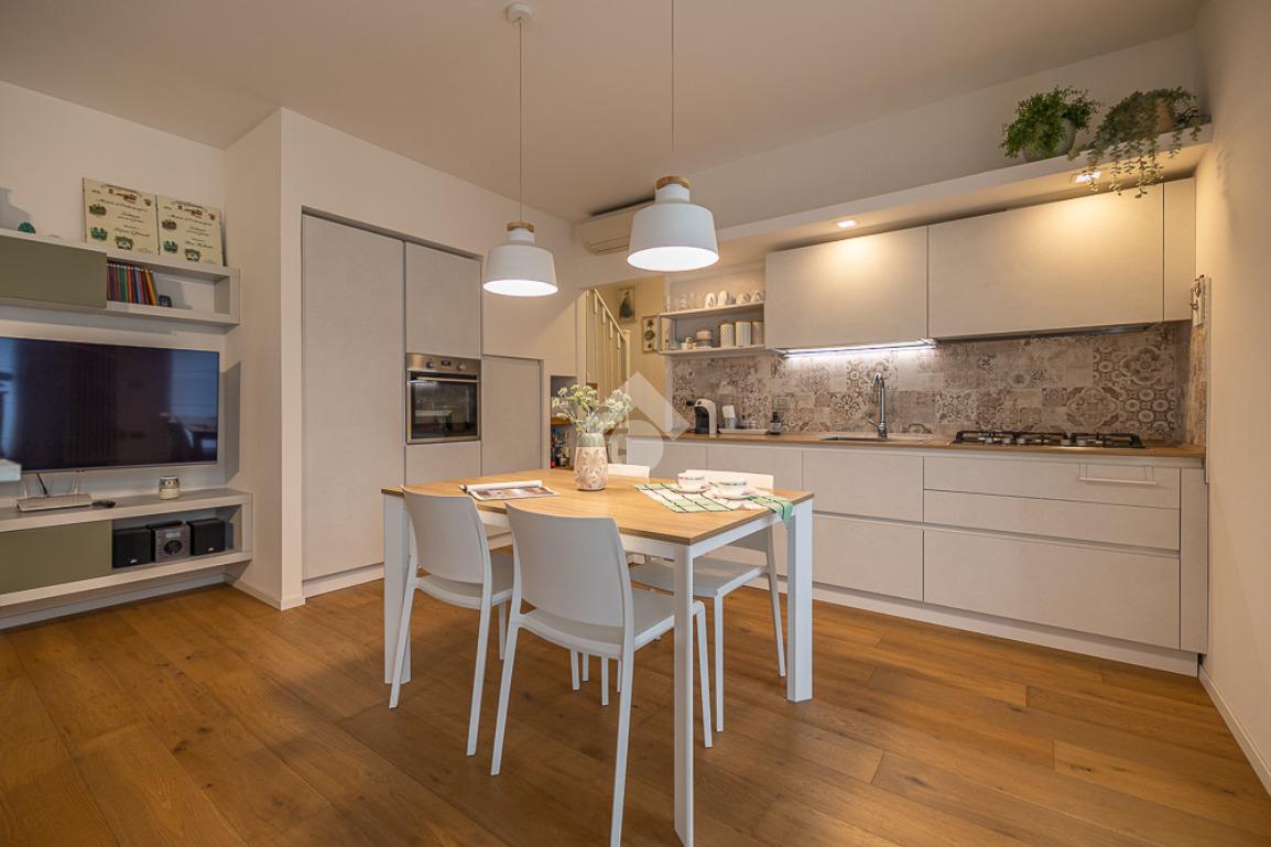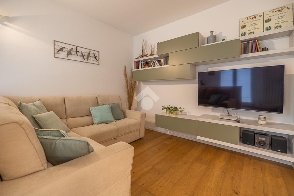 All'interno, troviamo un accogliente e luminoso soggiorno/pranzo con cucina a vista.