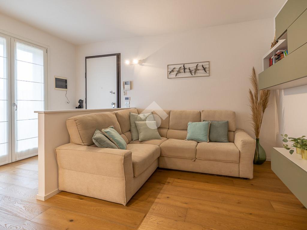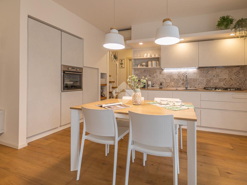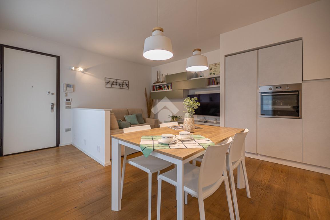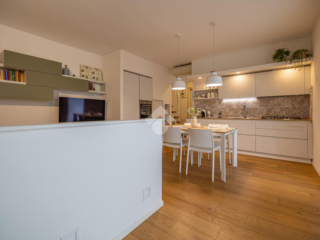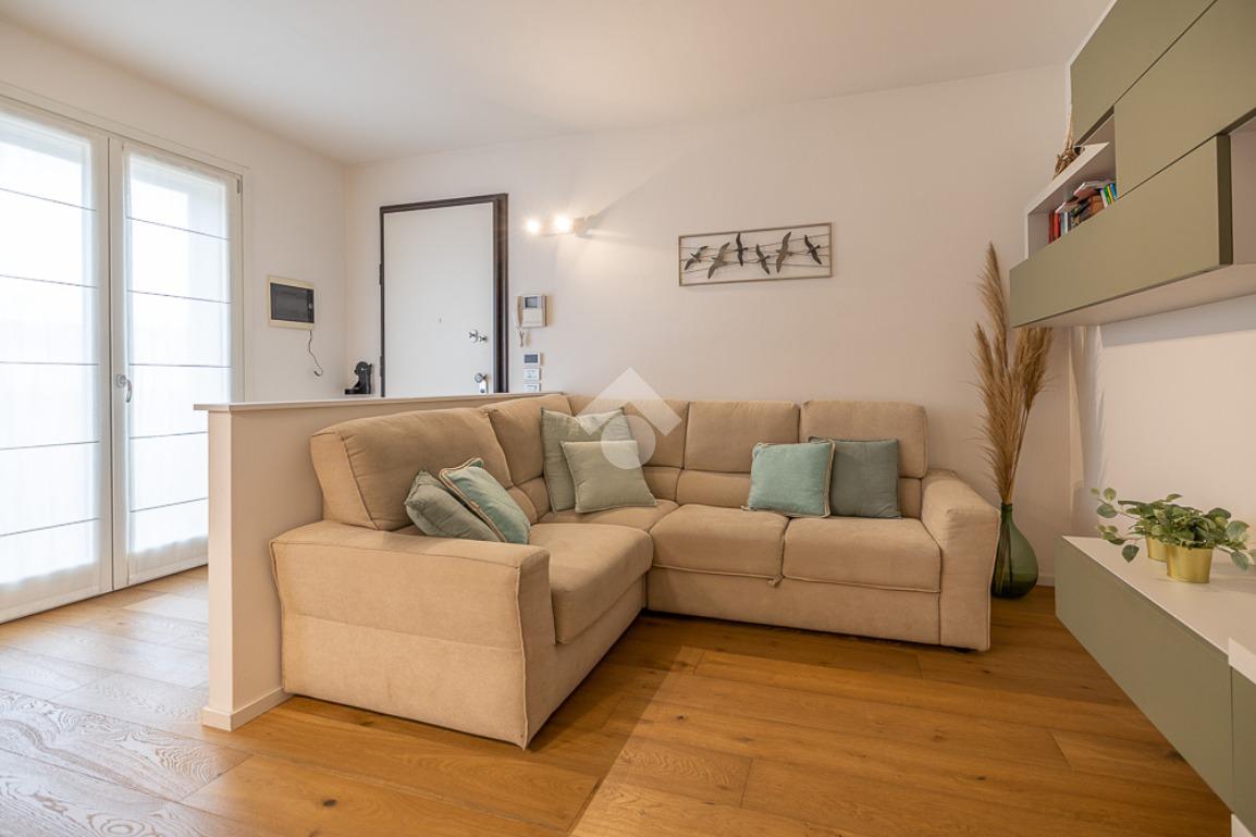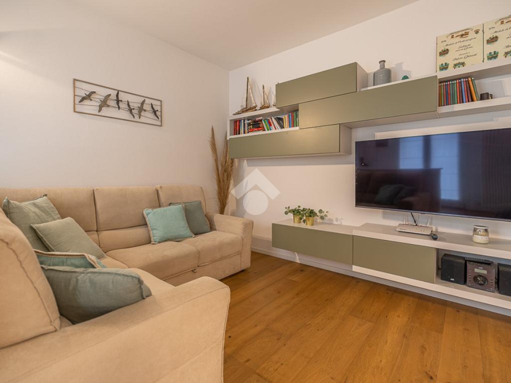 All'interno, troviamo un accogliente e luminoso soggiorno/pranzo con cucina a vista.