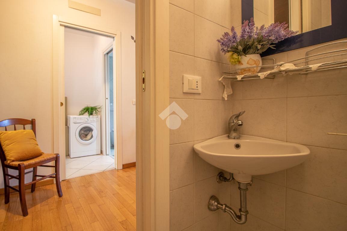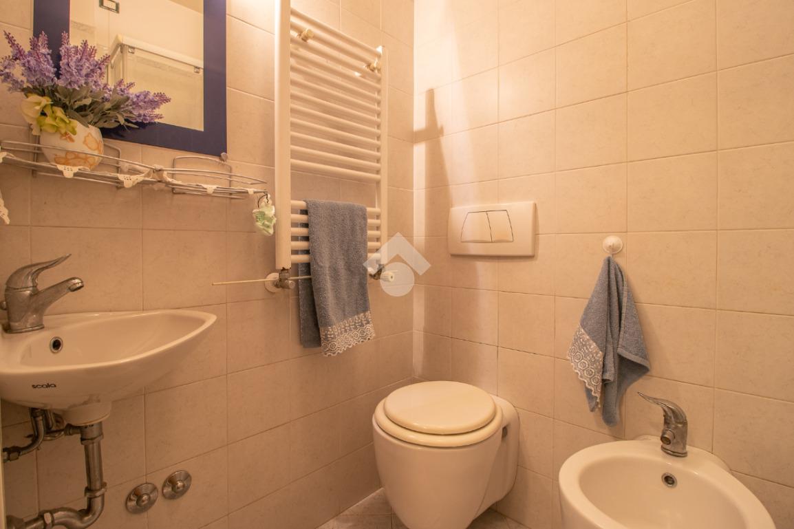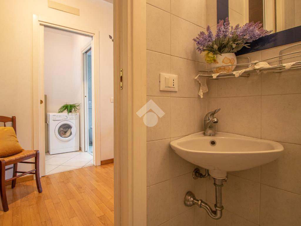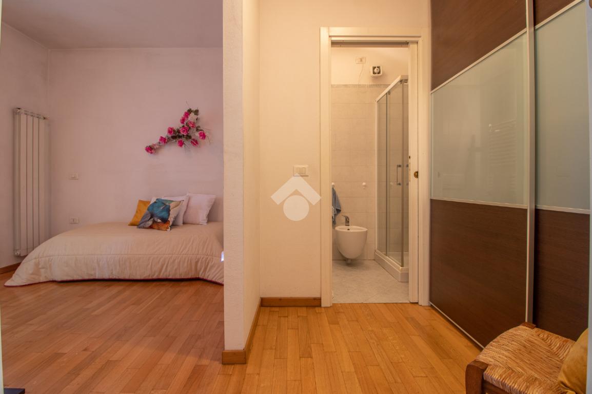 L’ingresso si apre su una confortevole zona giorno con cucina a vista, servita da un comodo bagno completo di box doccia.