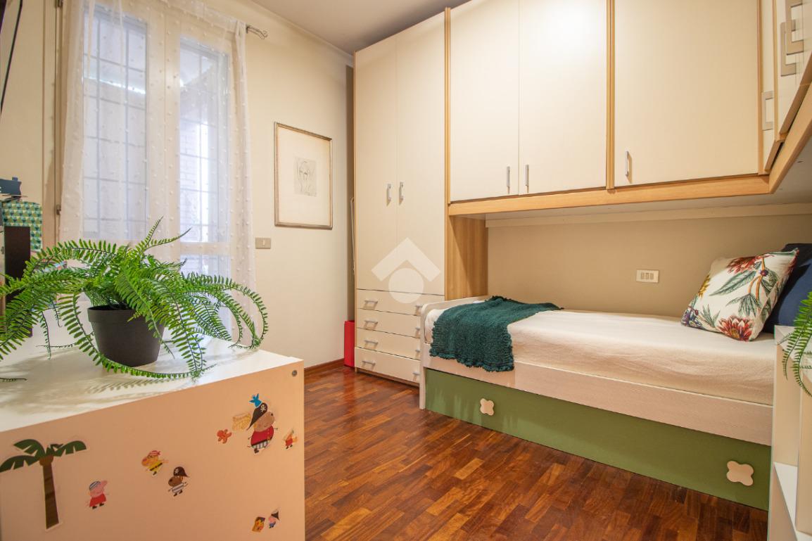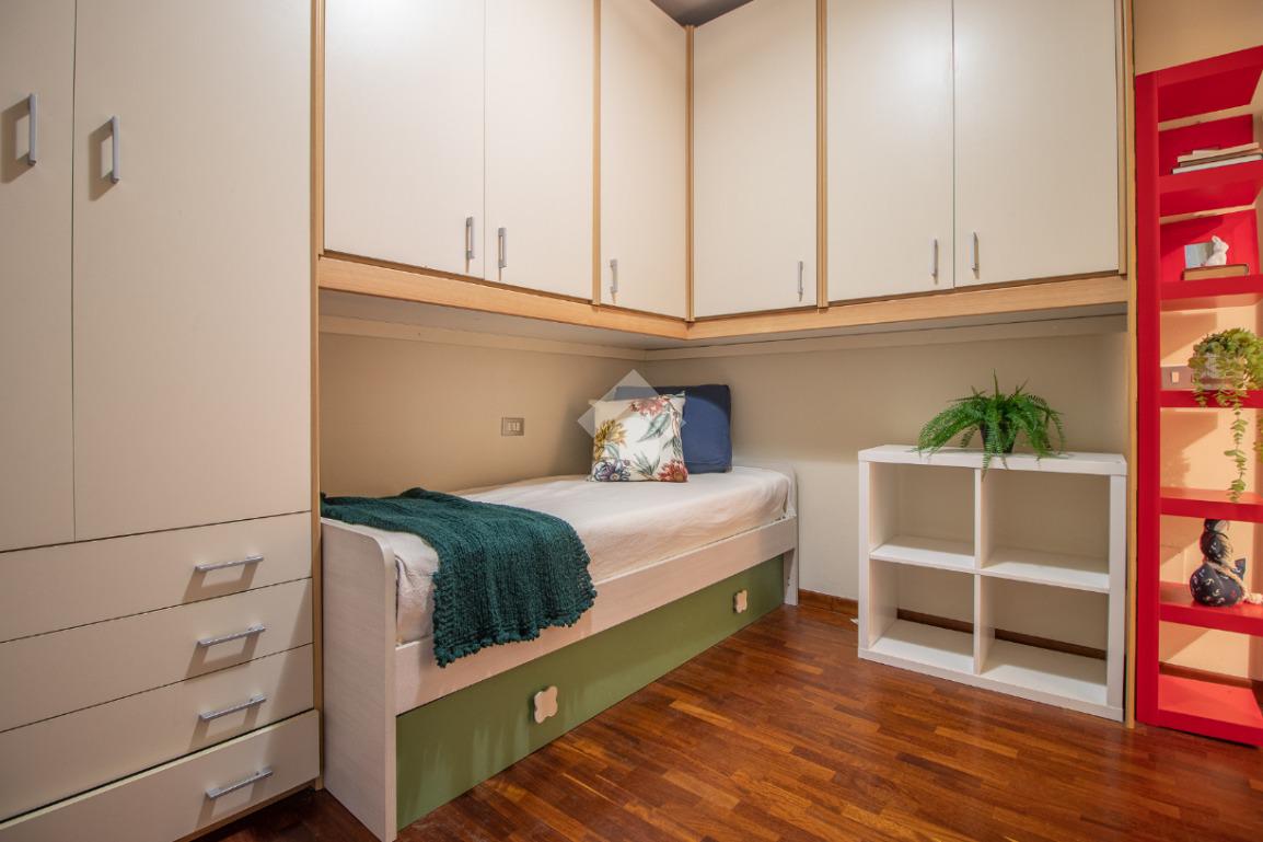 La zona notte comprende un bagno finestrato con box doccia, una camera matrimoniale e una seconda camera.